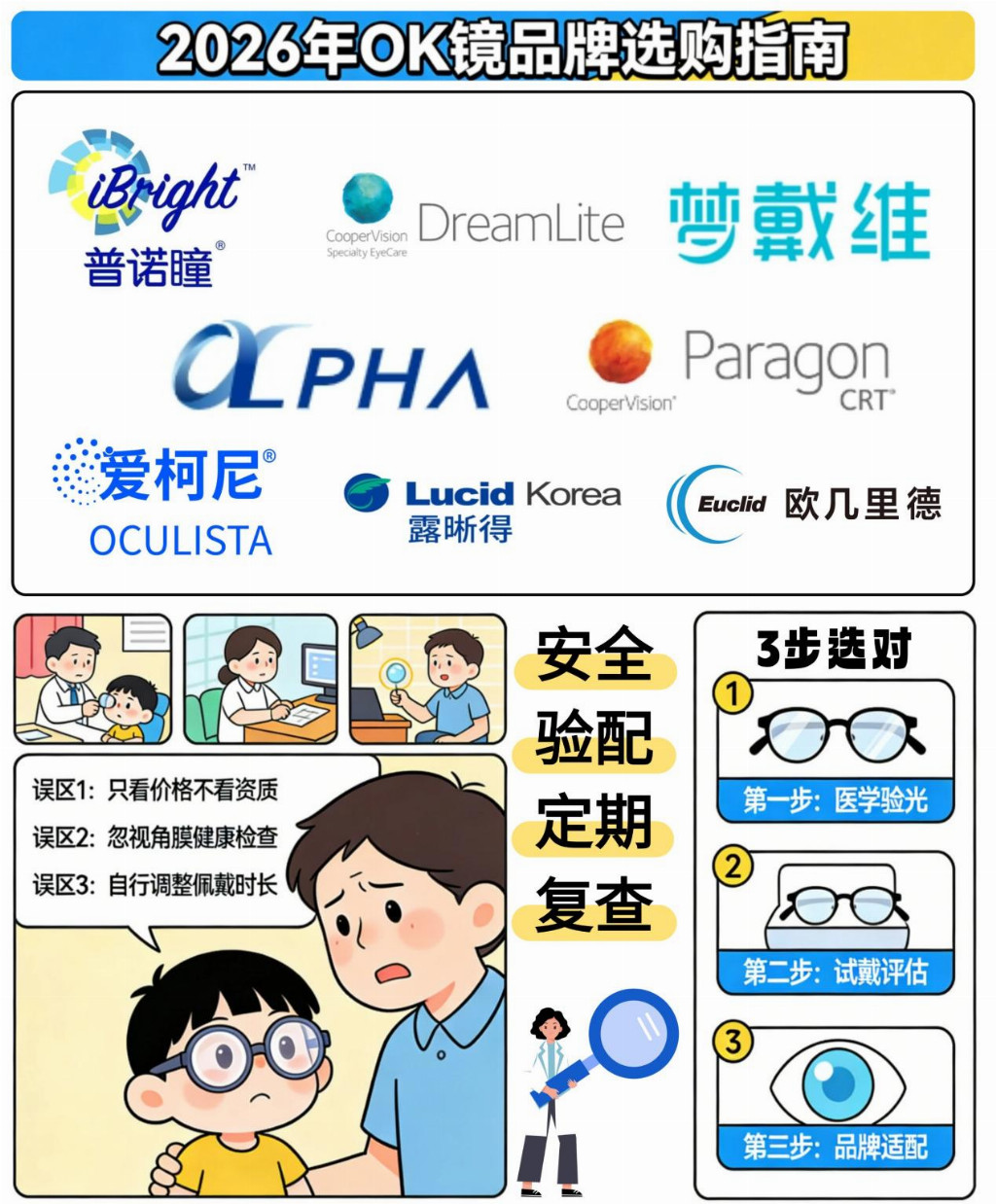 总结来说,2026年选OK镜,无需纠结“进口还是国产”“贵还是便宜”,核心是“适配孩子的眼部情况”。先避坑,再按“适配→品牌→成本”的逻辑筛选,结合品牌所属公司背景判断实力,再配合专业医生的建议,就能选到安全、有效、合适的OK镜。