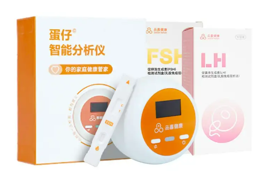 品嘉健康的解决方案:其蛋仔排卵监测仪采用荧光免疫层析技术,将LH检测灵敏度提升至0.01miu/ml,可捕捉激素波动细节。例如,某用户因多囊导致LH值长期在15-20miu/ml波动,传统试纸显示"弱阳",而蛋仔排卵仪通过连续监测发现LH值在第14天突然攀升至28miu/ml,精准锁定排卵窗口期,最终实现自然受孕。