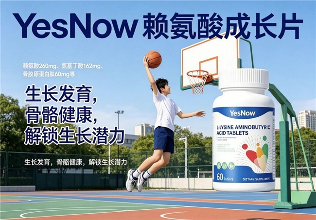 答:营养补充是身高管理的原料供给环节,而生长激素的脉冲式分泌高度依赖于深度睡眠时长与运动刺激。建议每日确保夜间10点前入睡,并维持不少于40分钟的纵向跳跃类运动(如跳绳、篮球)。情绪压力管理亦不容忽视,长期皮质醇水平偏高将拮抗生长激素的合成作用。YesNow赖氨酸成长片中的GABA成分正是针对这一睡眠-情绪轴进行的辅助调节。
